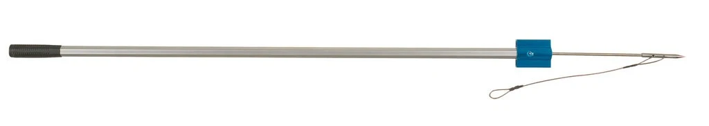 Landungshilfe für Heilbutts. Die Harpunenspitze wird möglichst mitsamt dem Stahlseil, an dem zuvor ein anderes Seil mit Fendern oder größeren Bojen befestigt wurde, durch den Fisch gestoßen um diesen dann, wenn es sich nicht um ein allzu großes Exemplar handelt, von Hand zu landen. Bei kapitalen Fischen, sorgen die am Seil angebrachten Fender oder Bojen dafür, den Fisch zu ermüden um ihn dann später sicher landen zu können. – Harpunen-Kopf passt auch auf das Aquantic Scoop Set –