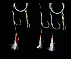 Dieses Pilkvorfach / Norwegen-Paternoster ist mit zwei Gummifisch-Beifänger am kräftigen Haken und Vorfach montiert.