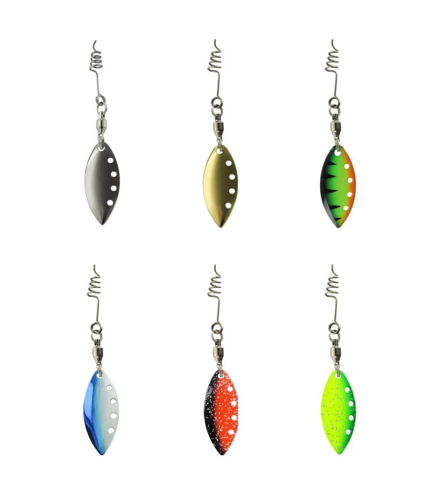 Pimp your Shad – Der EXTRA ,Reiz“ – durch die hochglänzenden und polierten Spinner- Blättchen wird beim Gummifisch ein zusätzlicher Reiz in optischer sowie in bewegender Form ermöglicht. Das Spinner-Blättchen wird einfach in den Gummifisch ,eingeschraubt“ und hält durch die Feder sehr stabil. Gerade beim Hechtfischen sowie auch beim Hochseeangeln in Ost- und Nordsee ein Erfolgsgarant!