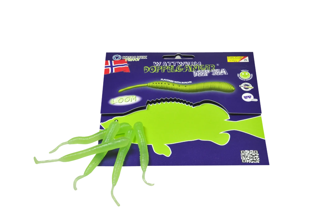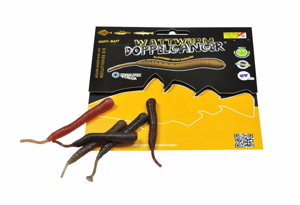 Wer kennt das nicht der Angeltag läuft und die Fische beißen. Es kommt die Zeit, wo dei vorhandenen Wattwürmer alle sind oder diese schlecht erhältlich sind. Für diesen Fall hat Eisele den Wattwurm Doppelgänger entwickelt. Dieser Köder setzt neue Maßstäbe im Kunstköderbereich. Dieser innovative Wurm sieht nicht nur aus wie ein echter WAttwurm, sondern ist auch mit dem revolutionärem Lockstoff der Norwegischen Berufsfischer „Kvalvik“ vollgesogen. Diese Würmer bestehen aus sehr haltbaren, leicht auftreibenden, PVC und phthalatfreien, nicht abfärbenden Material ohne toxische Weichmacher. Der Köder ist 1000 mal haltbarer als andere Gummiköder. Er hat eine Länge von 8cm. In jeder Packung sind 4 Watties und 1 Turbo-Tail enthalten. Die Größe dieser Wattwurm Doppelgänger gibt es in vier Farben, wobei drei (Deep Sea) speziell für die Angelei auf Rotbarsch, Steinbeißer oder auch Dorsch und Seelachs gedacht sind. Diese drei Farbvarianten leuchten extra im Dunkeln. Der Wuttwurm Doppelgänger ist Made in Germany und eine echte Alternative für das Original in Ost- und Nordsee, sowie für Norwegen und Island.