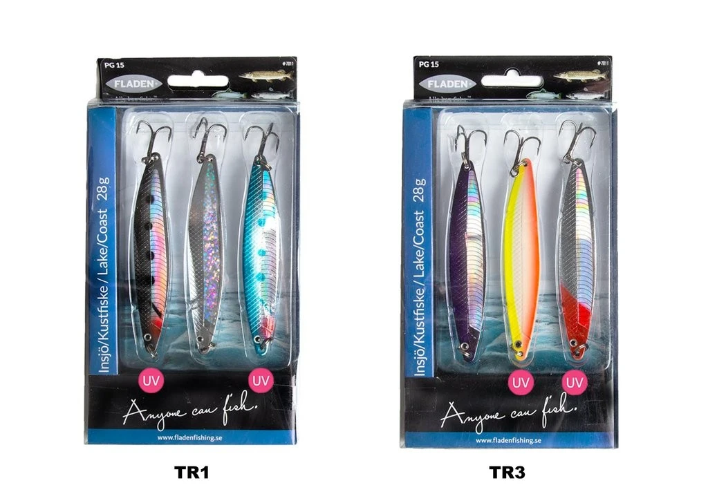 Dieses Set besteht aus drei verschiedenfarbigen Nidingen Blinkern mit einem Gewicht von 28g. Es gibt zwei verschiedene Modelle mit verschiedenen Farbvarianten.