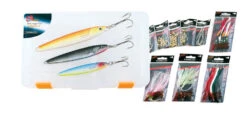 Diese 67-teilige Zubehör-Set für die Bootsangelei besteht aus einer praktischen Köderbox, die mit 1x 80g, 1x 200g und 1x 320g Pilker gefüllt ist. Weiter beinhaltet dieses Set 3 fängige Vorfächer, 5 Gummi-Makks, 10x Kreuzwirbel, 20x Wirbel, 5x Einzelhaken und 20x Wirbel mit Einhänger in zwei verschiedenen Größen.