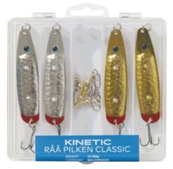 Ein traditioneller Blinker/Pilker mit viel Geschichte. Die Schwimmaktion ist sehr umfangreich. Man kann diesen Köder auch in tiefem Wasser wirklich gut einsetzen. Die Form macht ihn perfekt zum Werfen und beeinträchtigt die Aktion nicht. Es stehen jeweils zwei Farb-Sortierungen mit je 2x 40g und 2x 60g zur Verfügung. In der Box, die inklusive ist, sind von jeder Farbe und Grammatur ein Pilker enthalten. In der Box sind somit 4 Pilker enthalten.