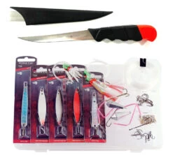 Verbringen Sie mit dem Sabiki Harpe Kroksett Rig weniger Zeit mit dem Takeln und fangen lieber mehr Fisch. Dieses Hakenrig wird komplett mit 3 Gummiaalen, 3 Makrelenblinker auf haltbarer 0,60 mm starken monofilen Schnur geliefert. Das Rig zieht Fische aus der Ferne an.