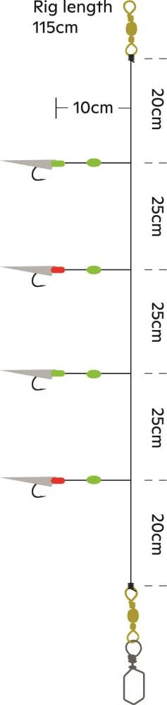 Dieses kurze und robuste Vorfach ist für das Bootsfischen und Werfen vom Ufer aus konzipiert. Fischen Sie wie ein „König“ mit den Kinetic Sabiki Royals!