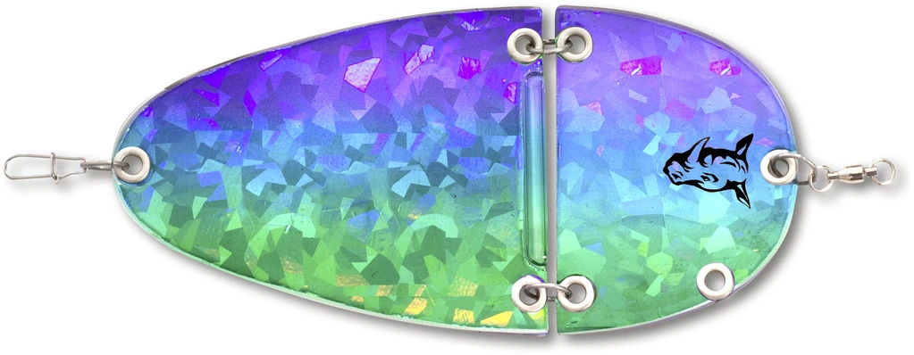 Der K2 Flasher ist der erste zweiteilige Flasher aus dem Hause Rhino. Sein verlockender Lauf wird Blinker- und Naturköderangler gleichermaßen begeistern. Durch seine seitlichen Ausbrüche, gepaart mit unregelmäßigen Drehungen, hat dieser Flasher schon in der Probephase gezeigt, dass er Lachse, Meerforellen und Dorsche zu betören weis. Durch seine einzigartige Bauform macht dieser Flasher im Drill so wenig Druck, dass man das Gefühl hat, man drillt die Fische an der freien Schnur. Ein wahres Drillvergnügen ist sicher. Dieser Flasher ist in sechs verschiedenen Farben verfügbar, wobei die Rückseite abhänig von der Farbe gefärbt ist. Der Flasher ist in einer Länge von 12,5cm oder 18cm verfügbar. Dabei hat er ein Gewicht von 21g bzw. 53g.