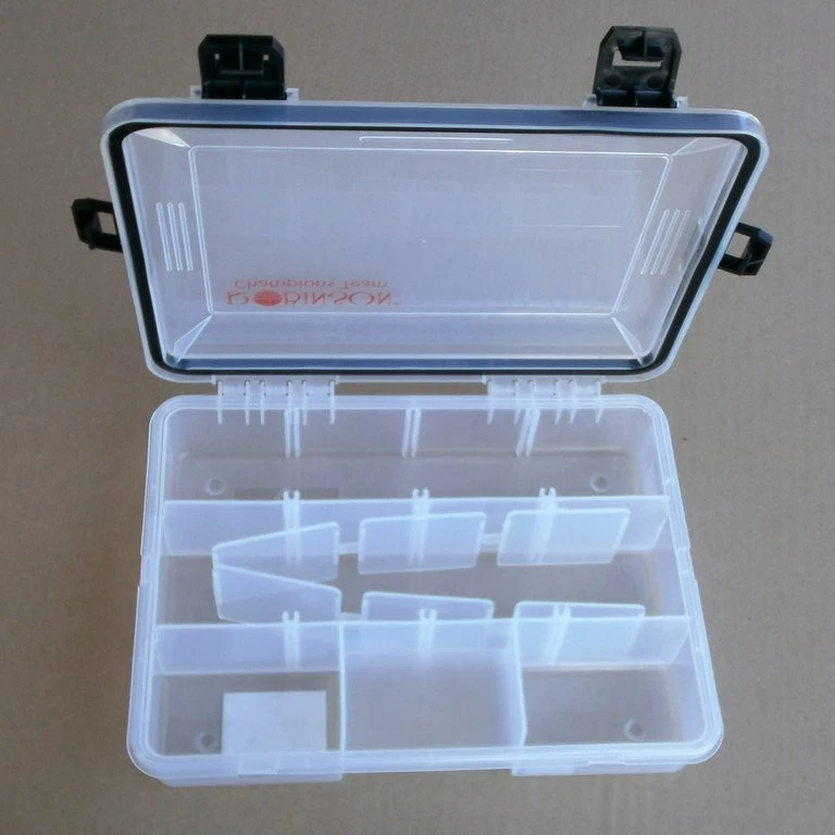 Diese Zubhörbox hat eine Größe von 23×17,5x5cm und verfügt über frei einteilbare Fächer. Ein Dichtungsgummi am Deckelrand sorgt für höhere Wasserdichtigkeit.