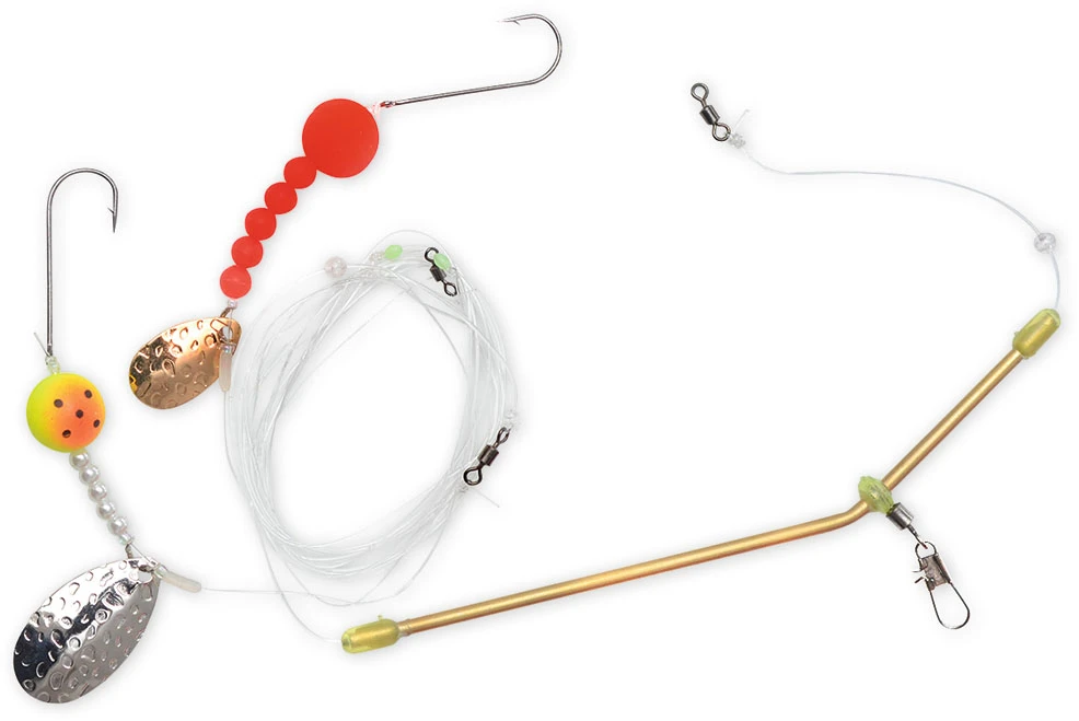 Dieses Vorfach ist eine Naturködermontage für die Bootsangelei auf Dorsch. Ausgestattet ist das Rig zwei Haken, Spinnerblättern und Lockperlen sowie einem Anti-Tangle-Boom. Die Haken haben die Größe 1. Die Hauptschnur besitzt einen Durchmesser von 0,70mm und die Seitenarme 0,50mm. Das Vorfach hat eine Länge von 2m.