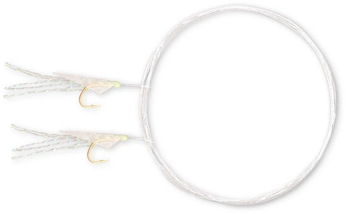 Beim Heringsangeln kommt es auf das richtige Vorfach an. Somit fangen einige Angler immer deutlich mehr Fische als andere. Das Holografix Vorfach vereint alle wichtigen Eigenschaften, damit der Fangeimer schnell gefüllt ist. Scharfe, stabile Haken gebunden mit echter Fischhaut und zusätzlichen holografischen Fäden machen dieses Vorfach perfekt. Es gibt drei verschiedene Farben und es stehen 2 oder 5 Haken zur Auswahl. Bei zwei Haken weißt das Vorfach eine Länge von 1m aus und bei 5 Haken von 1,40m. Die verwendeten Haken haben die Größe 10. Das Vorfach hat eine Tragfähigkeit von 5kg, wobei die die Hauptschnur 0,30mm und die Vorfachschnur 0,25m starkt sind.