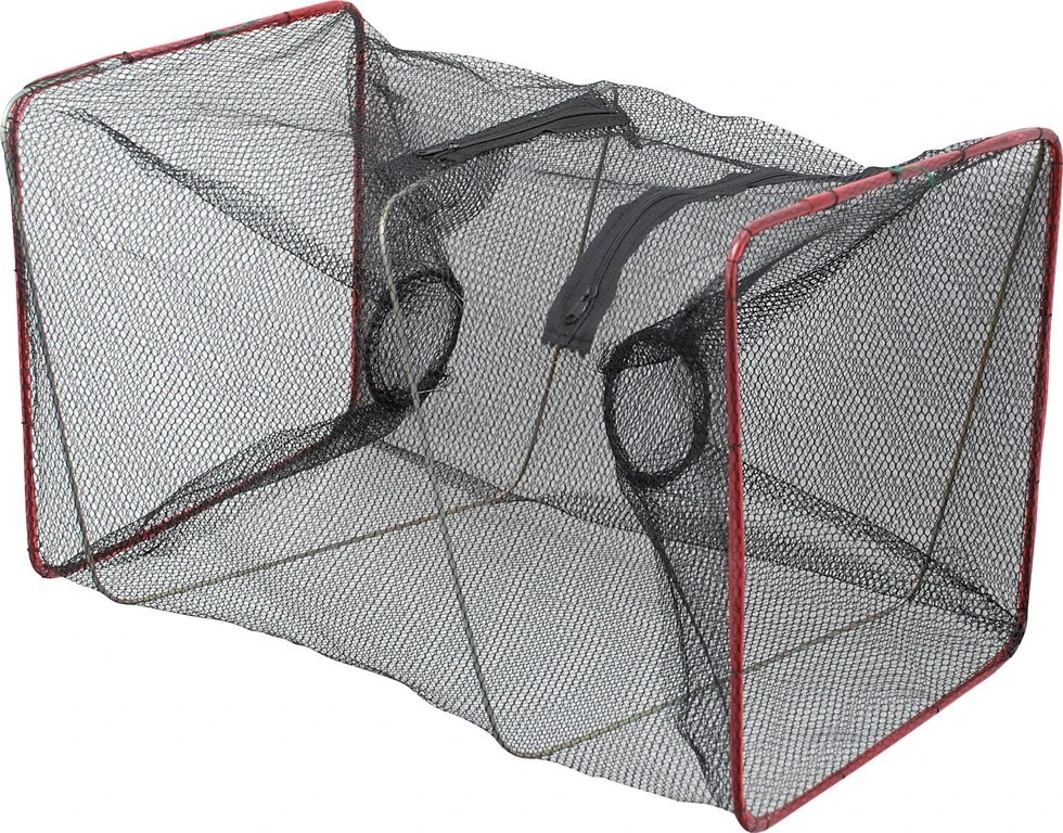Wer sich seine Köderfische und Krebse selbst fängt, wird von dieser Falle begeistert sein. Zwei Wege führen hinein, jedoch für die Beute keiner hinaus. Der Köder wird in einer kleinen Tasche mit Reißverschluss untergebracht und kann dort seine Wirkung entfalten, ohne weggefressen zu werden. In runder und eckiger Ausführung erhältlich.