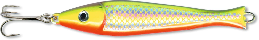 Diese Pilkerform besitzt einen abgesetzten Kiemenbereich. Durch den veränderten Schwerpunkt ergeben sich neuartige Laufeigenschaften, die sehr verführerisch wirken. Dieser Pilker ist in den drei fängigsten Dekoren erhältlich.