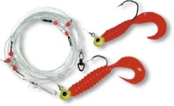 Das Vorfach verfügt über eine 0,80mm starke Schnur mit einer Tragkraft von 40kg. An dieser sind zwei Haken der Größe 7/0 und ein Leuchtblinker, der bei Wasserkontakt angeht, befestigt. Die Länge beträgt 190cm. Das Rig wir auf einem runden Aufwickler geliefert und kann somit nach Gebrauch wieder auf diesem verstaut werden. Ein ideales Vorfach für Fischfetzen oder Garnelen zum Angeln auf Schellfisch, Dorsch oder Seelachs.